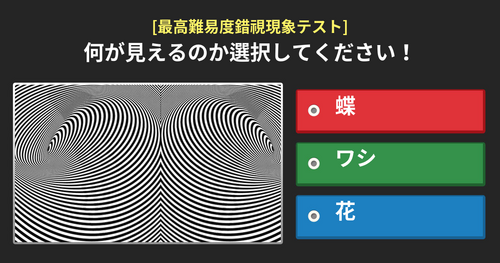 目がくらくらになるような画像たち! その中をよく見てみると、新しい形が現れると言われています! 果たしてあなたは全問正解できるでしょうか? 今すぐテストを始めてみましょう~
